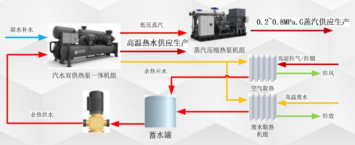 • 解决方案:通过余热回收机组,提取废水余热用于生产;